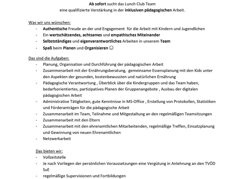 Lunch Club e.V. | Sparkasse Münsterland Ost | IBAN: DE92 4005 0150 0034 3498 86 | BIC: WELADED1MST